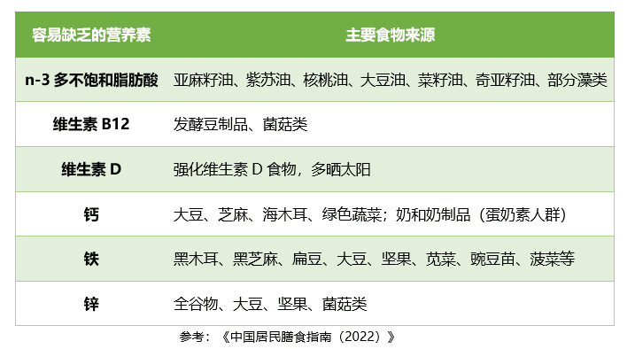 在這里,為大家整理素食人群常見缺乏營養(yǎng)素的食物來源,可以根據(jù)個人需要適量多吃。
