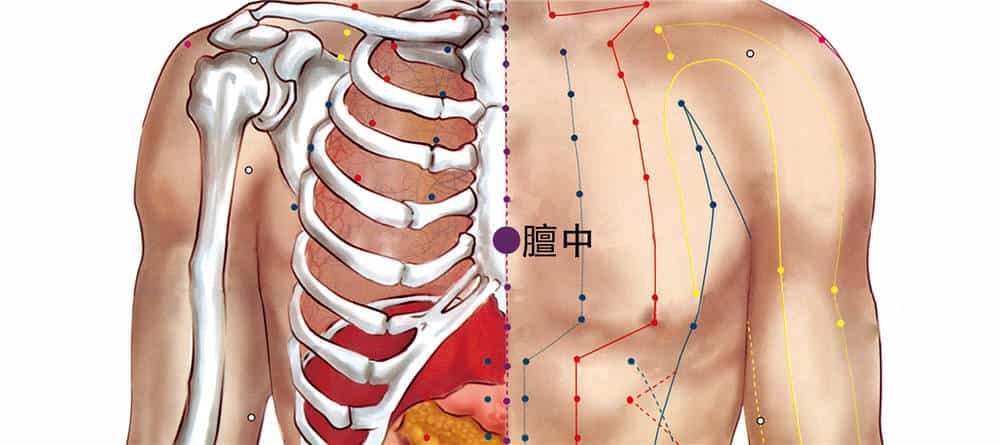 膻中穴是心包經(jīng)募穴,八會穴的氣會,具有利上焦、寬胸膈、降氣通絡(luò)的作用。