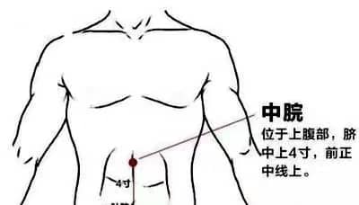 中脘穴位于人體的前正中線,肚臍上4寸的位置。