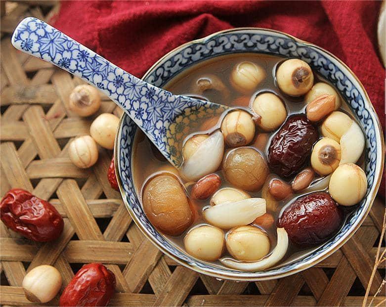 取桂圓肉5-10克,蓮子5-10克,大棗3-5顆,共煮成湯。